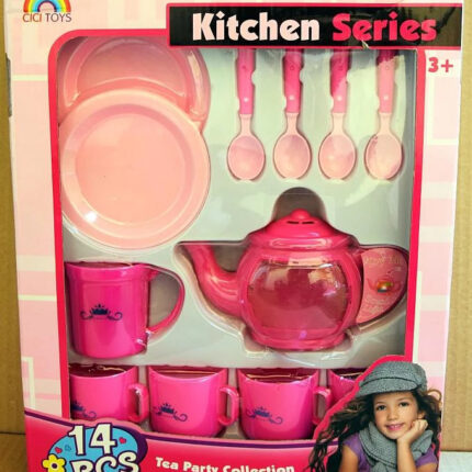 Cand se joaca de-a vizita, fetitele au nevoie si de un set de ceai. Setul contine 14 piese: un ceainic, o cana, 4 cesti, 4 lingurite si 4 farfurioare.